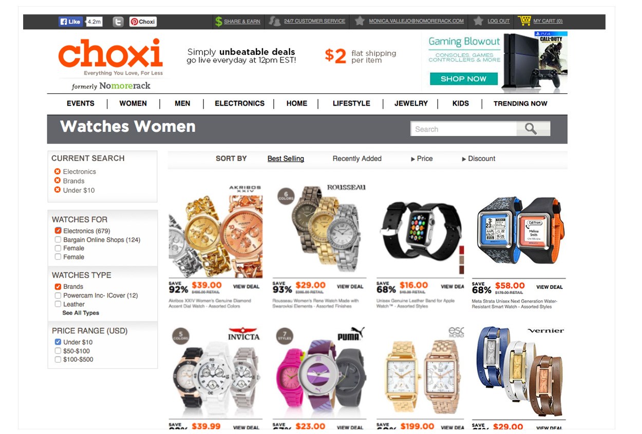 Choxi (formerly NoMoreRack) was an online shopping destination for those who wanted quality, brand-name apparel and accessories at up to 80% off retail. We offered authentic designer merchandise, non-branded, trendy items, and fabulous fashions at unbelievable prices.