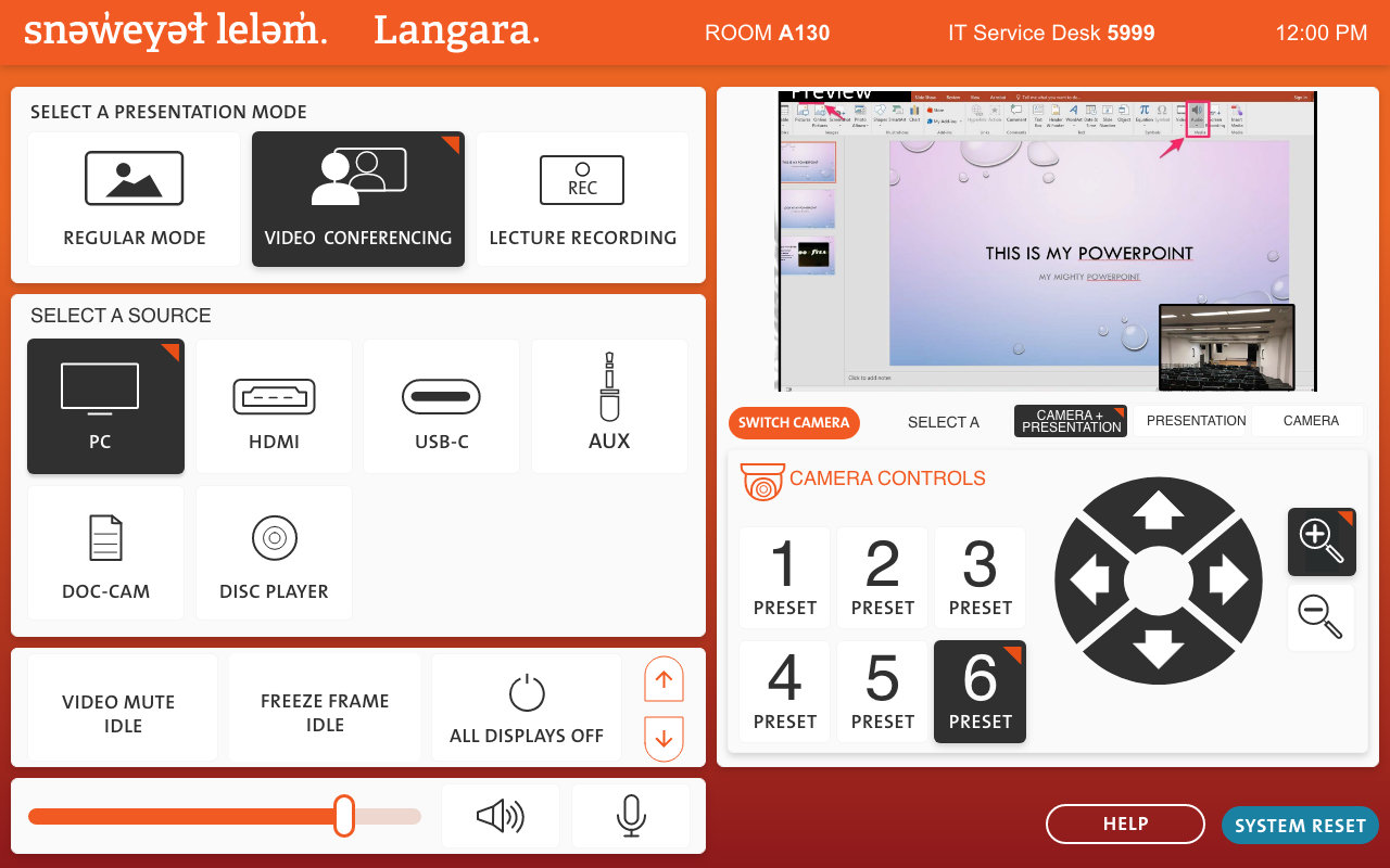 At Langara, we are committed to improving the user experience of our students and teachers at each point of contact. This new user interface provides an easy-to-use way to set up the classroom before any lecture or presentation. We are one of the first Colleges to have this customized Graphic User Interface in every room. Since we launched the interface, calls requesting help from IT have reduced dramatically.